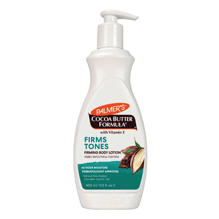 Visibly Firm & Tone skin with Palmer’s Cocoa Butter Formula Firming Lotion, specially crafted with Cocoa Butter, Vitamin E plus Collagen, Elastin & Q10 to address loss of tightness, elasticity or dimpled appearance.