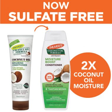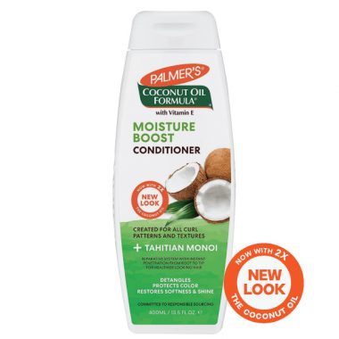 Palmer’s® Coconut Oil Formula Moisture Boost Conditioner restores dry or damaged hair with naturally-derived ingredients that deeply lock in moisture from root to tip, visibly improving your hair’s condition after each use.